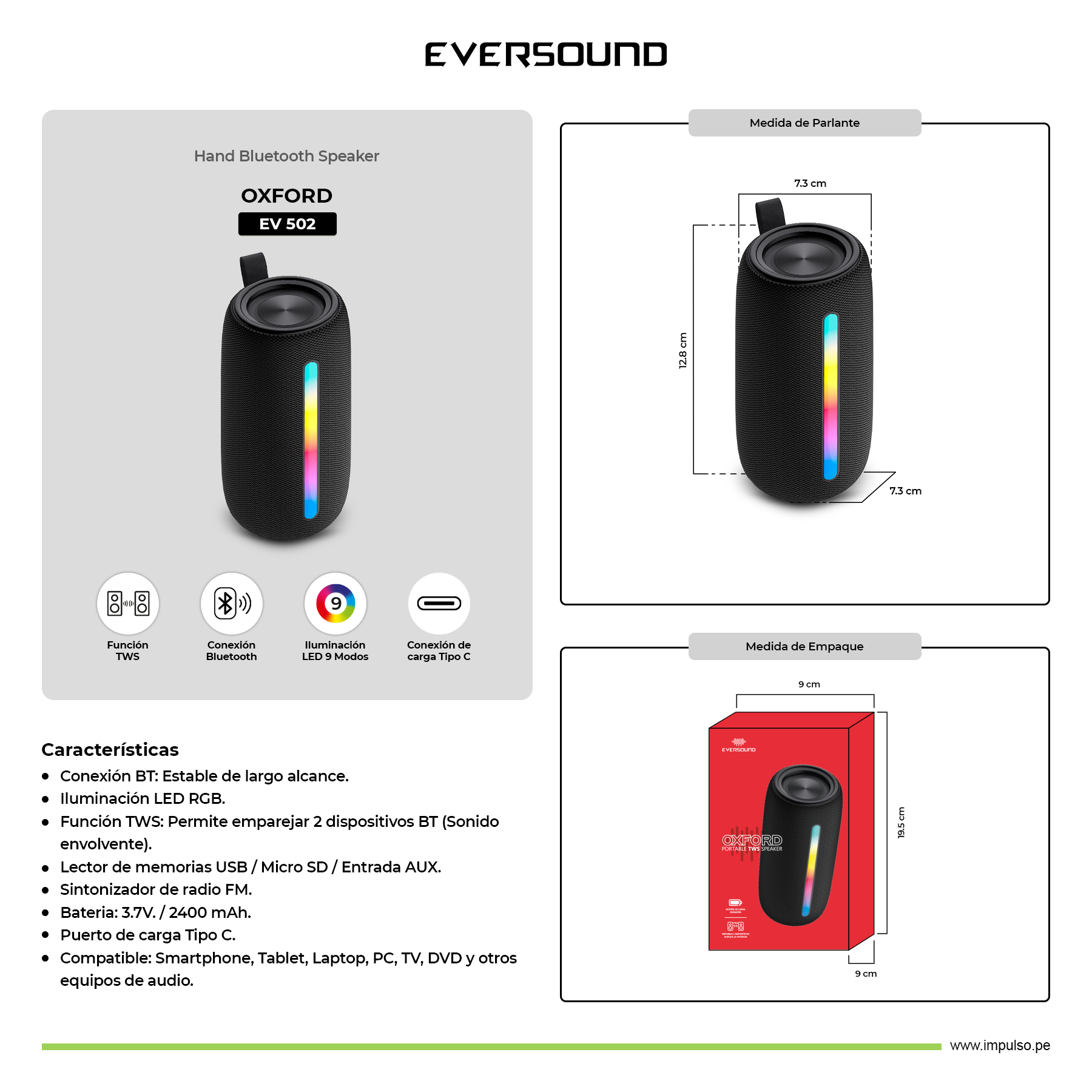 Marca: Eversound Eversound / Audio / EV - Hand Bluetooth Speaker