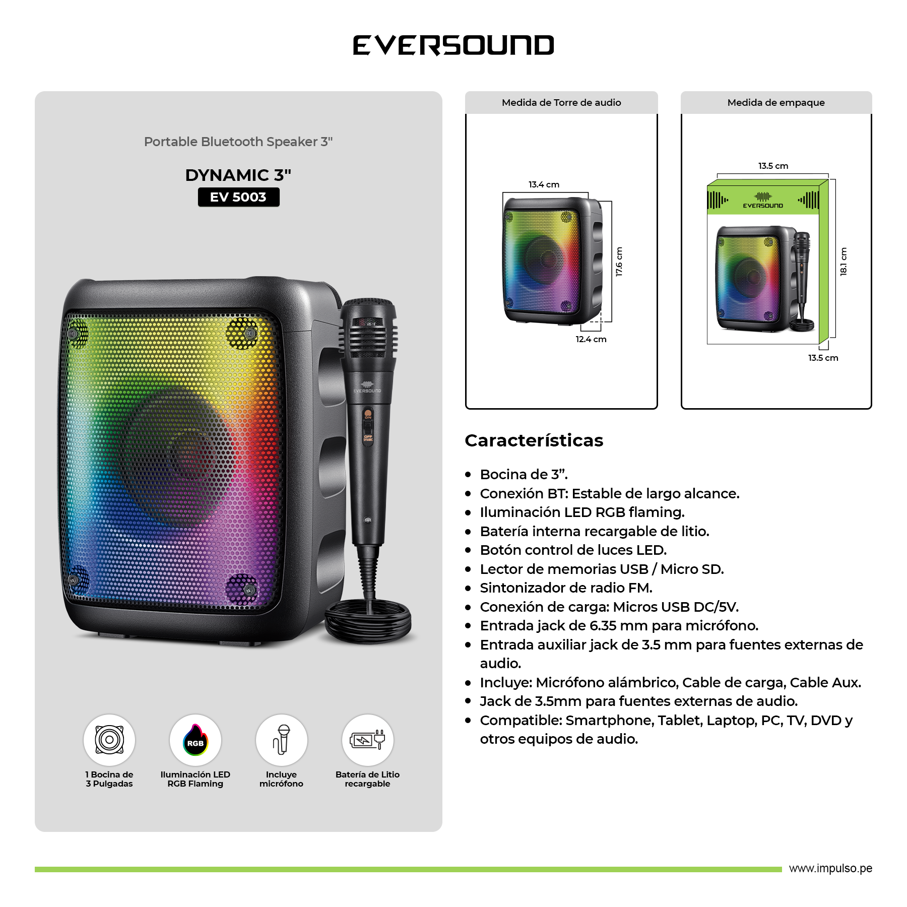Compatible: Smartphone, Tablet, Laptop, PC, TV, DVD y Otros Equipos de Audio.