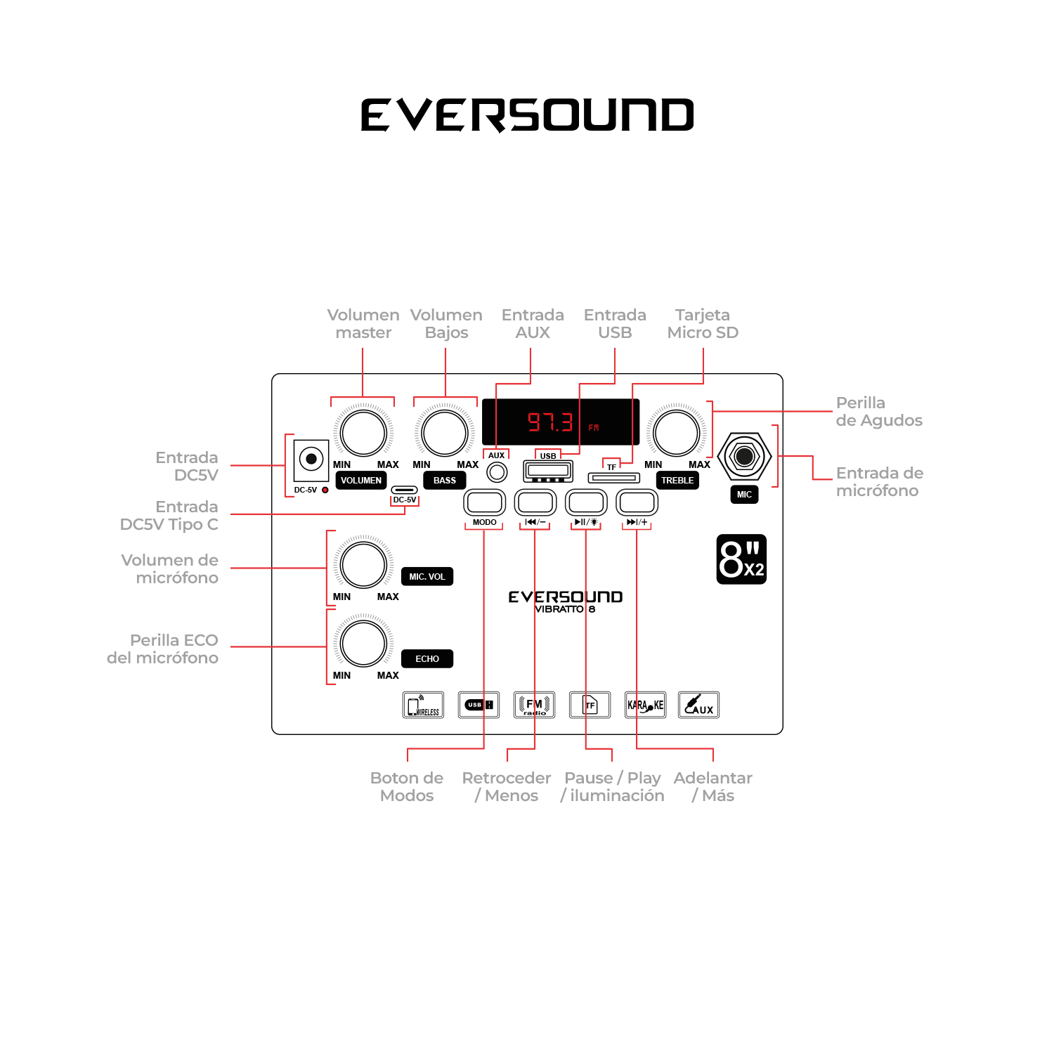 Perilla Aumentar Disminuir Eco del Micrófono.