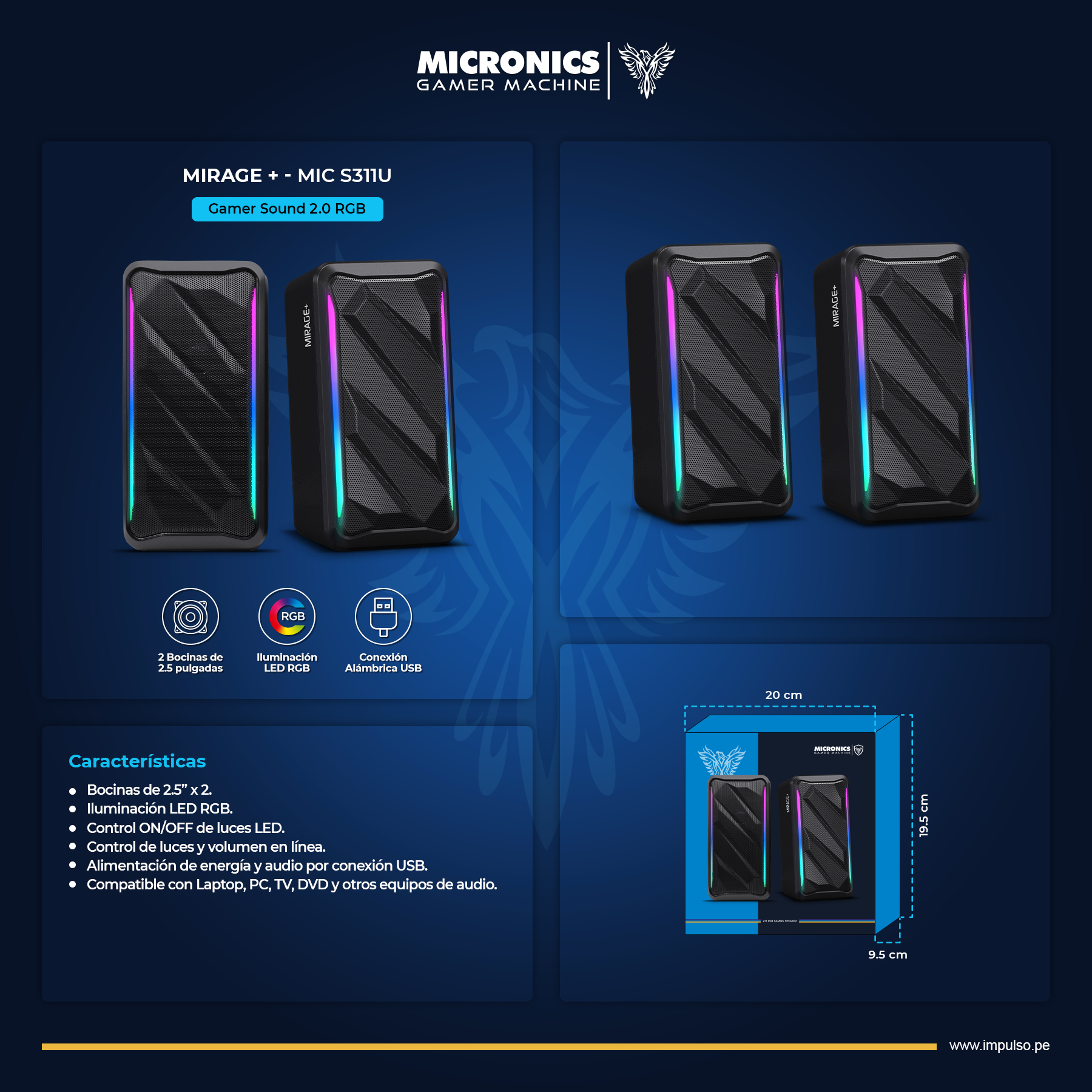 Marca: Micronics Micronics / Audio / MIC - Gamer Sound 2.0 RGB - 2.5" - USB