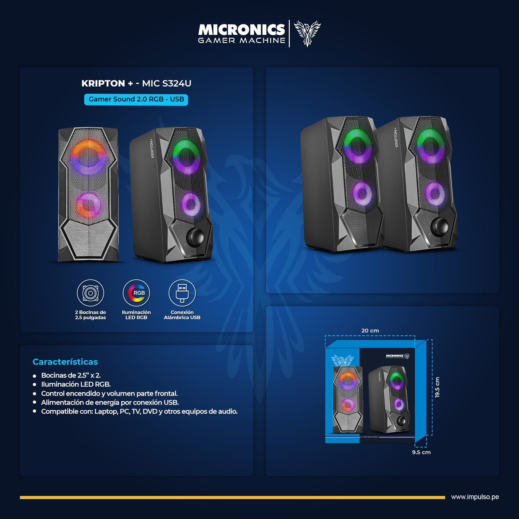 Marca: Micronics Micronics / Audio / MIC - Gamer Sound 2.0 RGB - 2.5" - USB