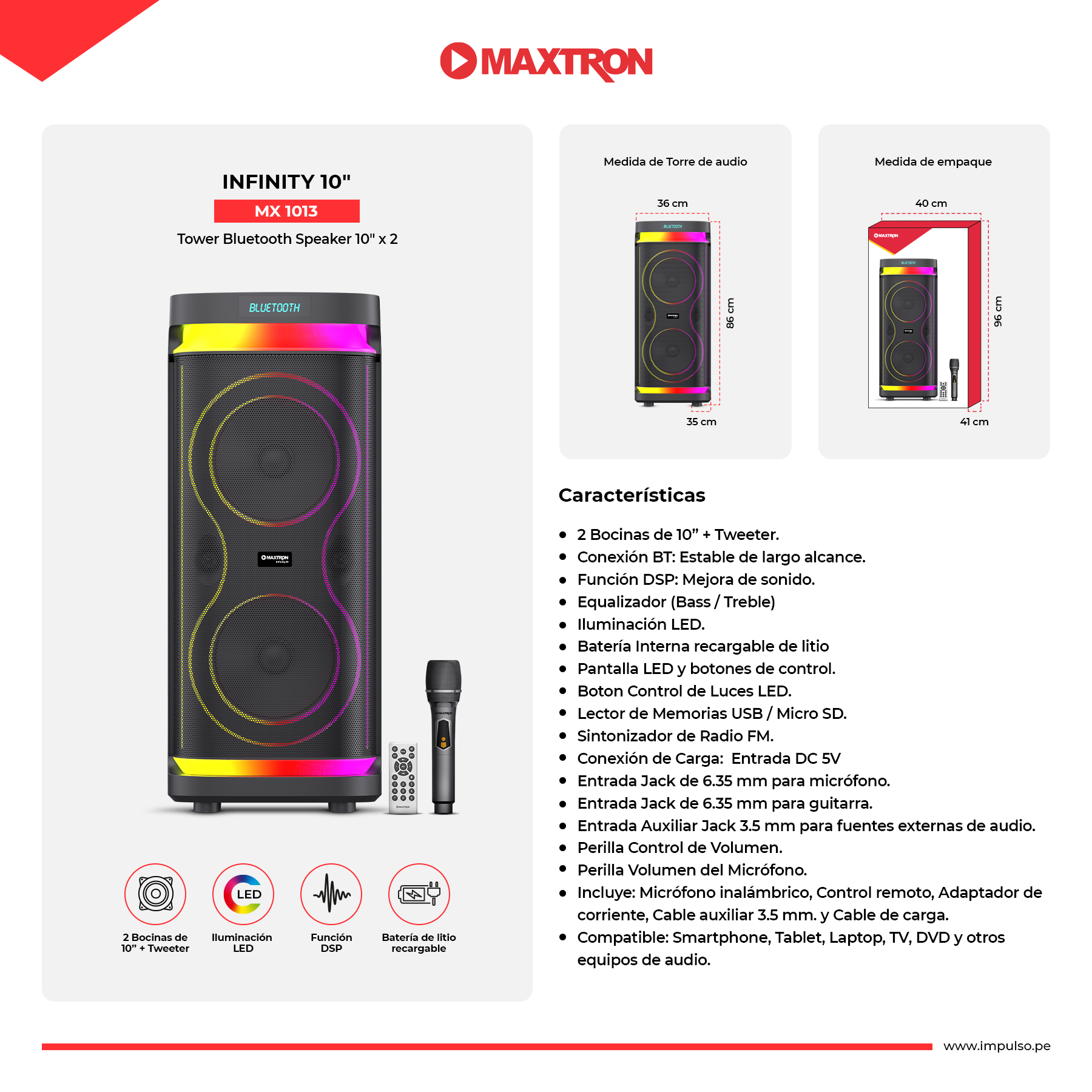 2 Bocinas de 10” + Tweeter.
