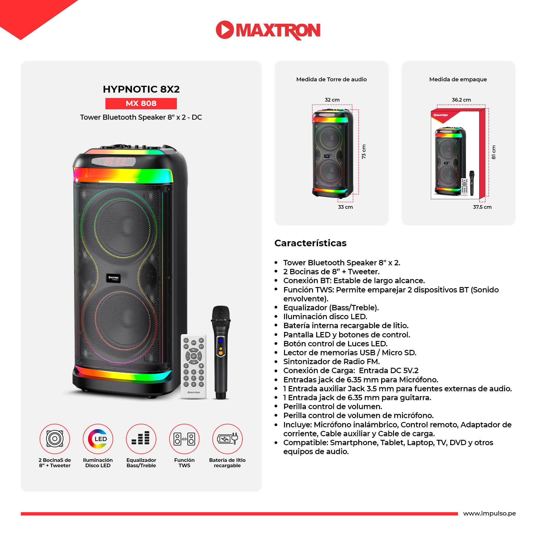 2 Bocinas de 8” + Tweeter.