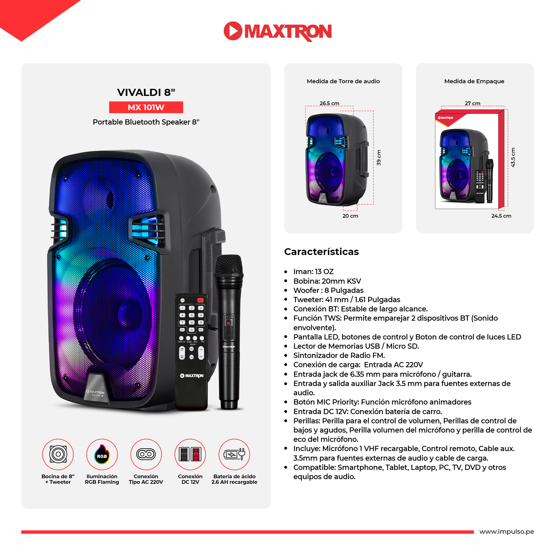 Bocina de 8” + Tweeter.
