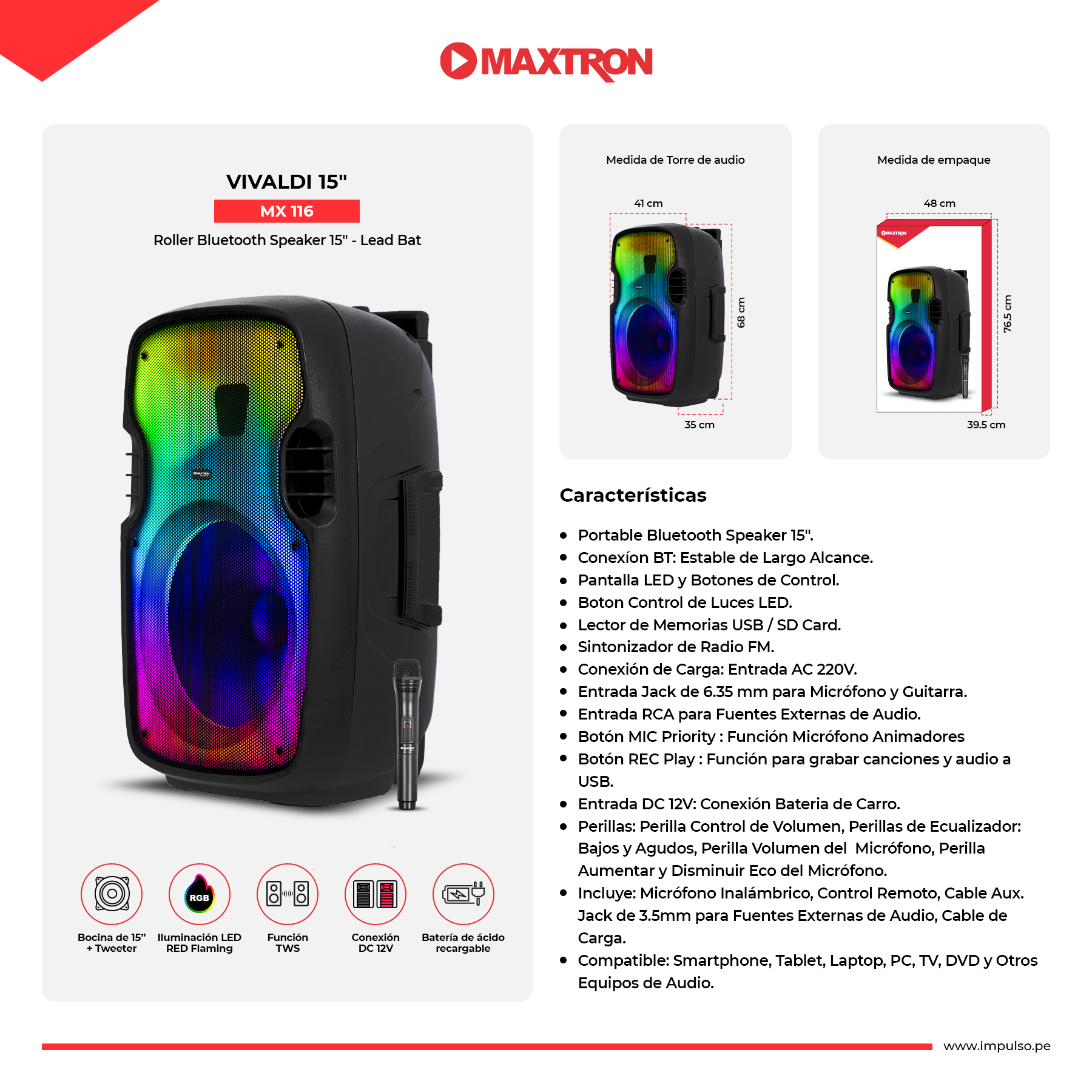 Bocina de 15”+ Tweeter.