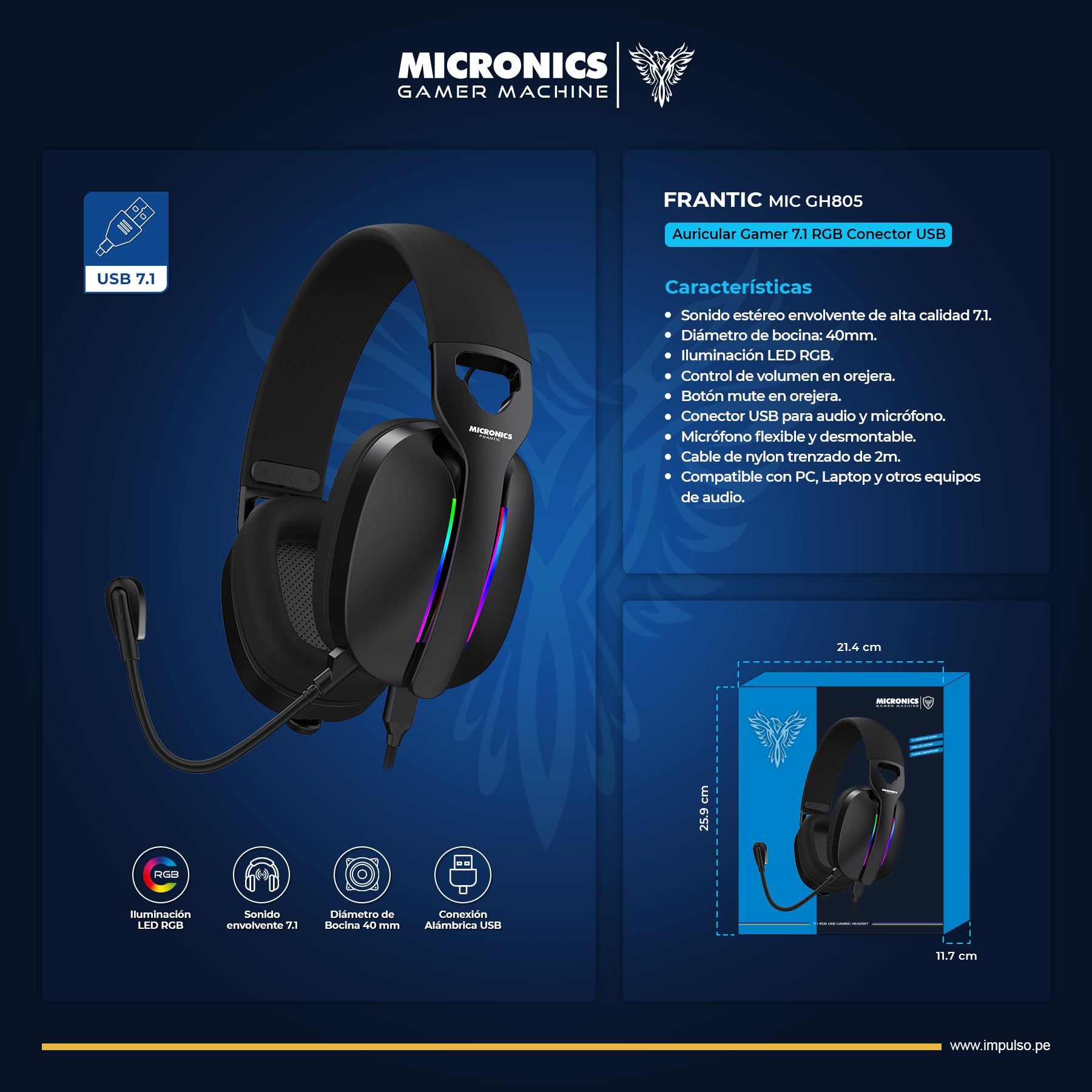 Auricular Gamer Machine 7.1 RGB - Conector USB