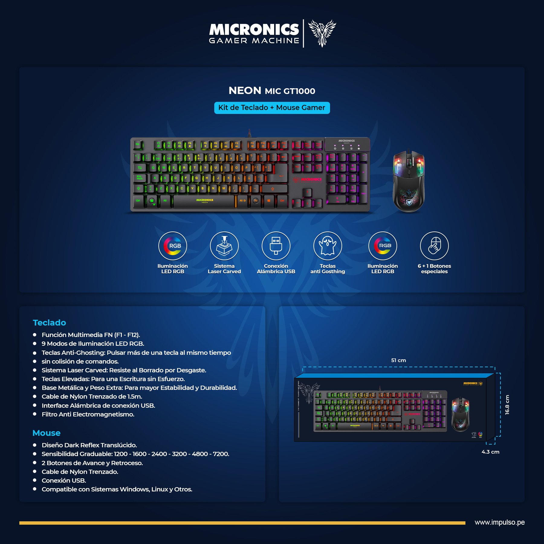 Micronics / Computer Kit / MIC - Kit Gamer Machine 2 en 1 - Teclado + Mouse