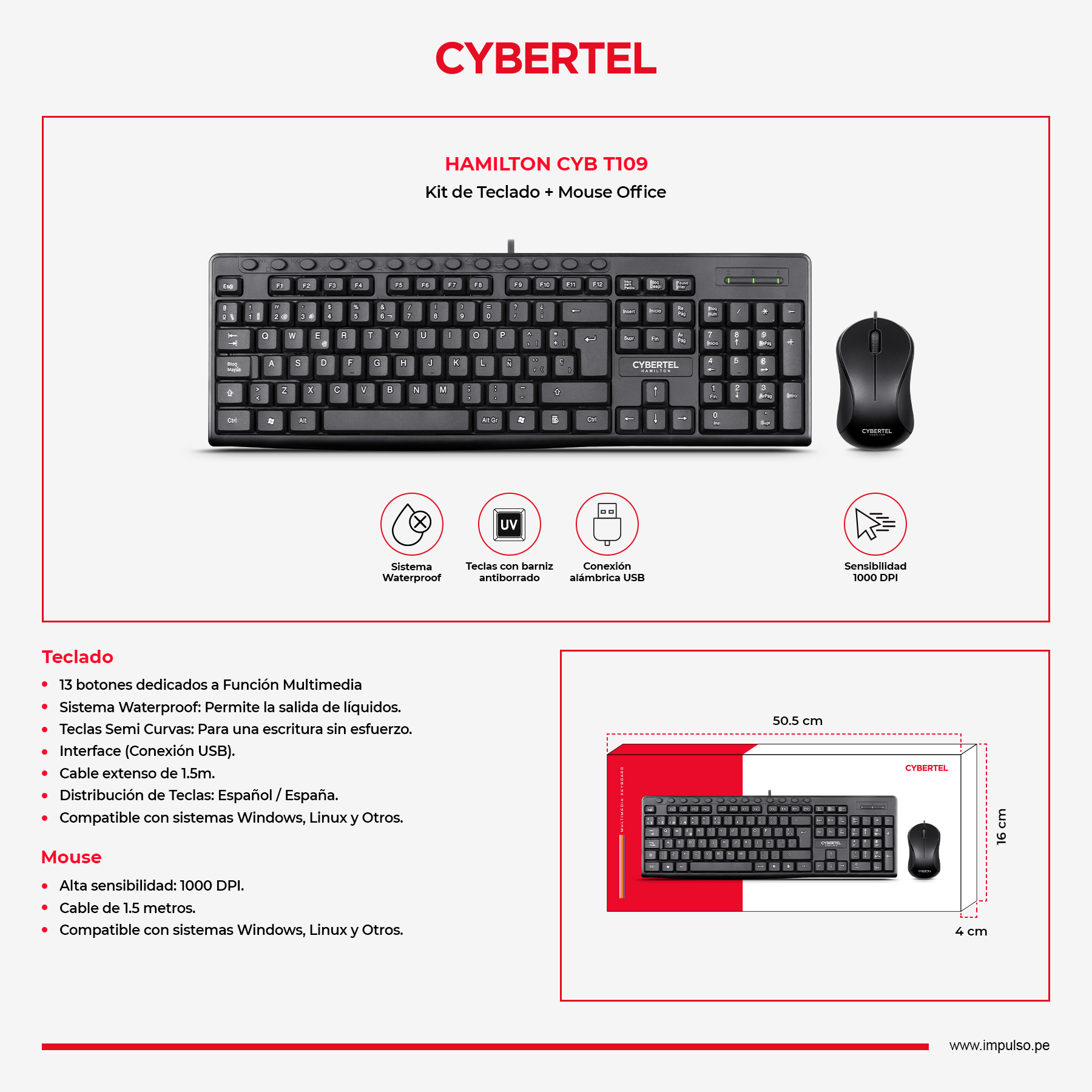 Kit Alámbrico: Teclado Multimedia + Mouse.