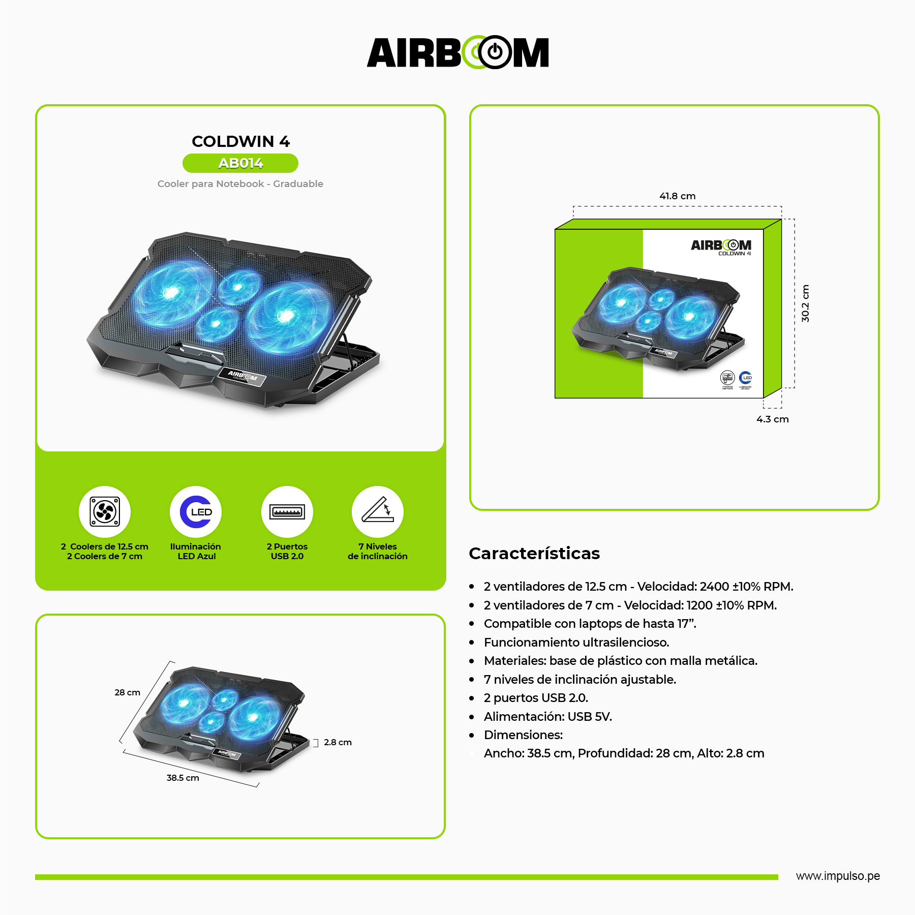 Iluminación: LED Azul.