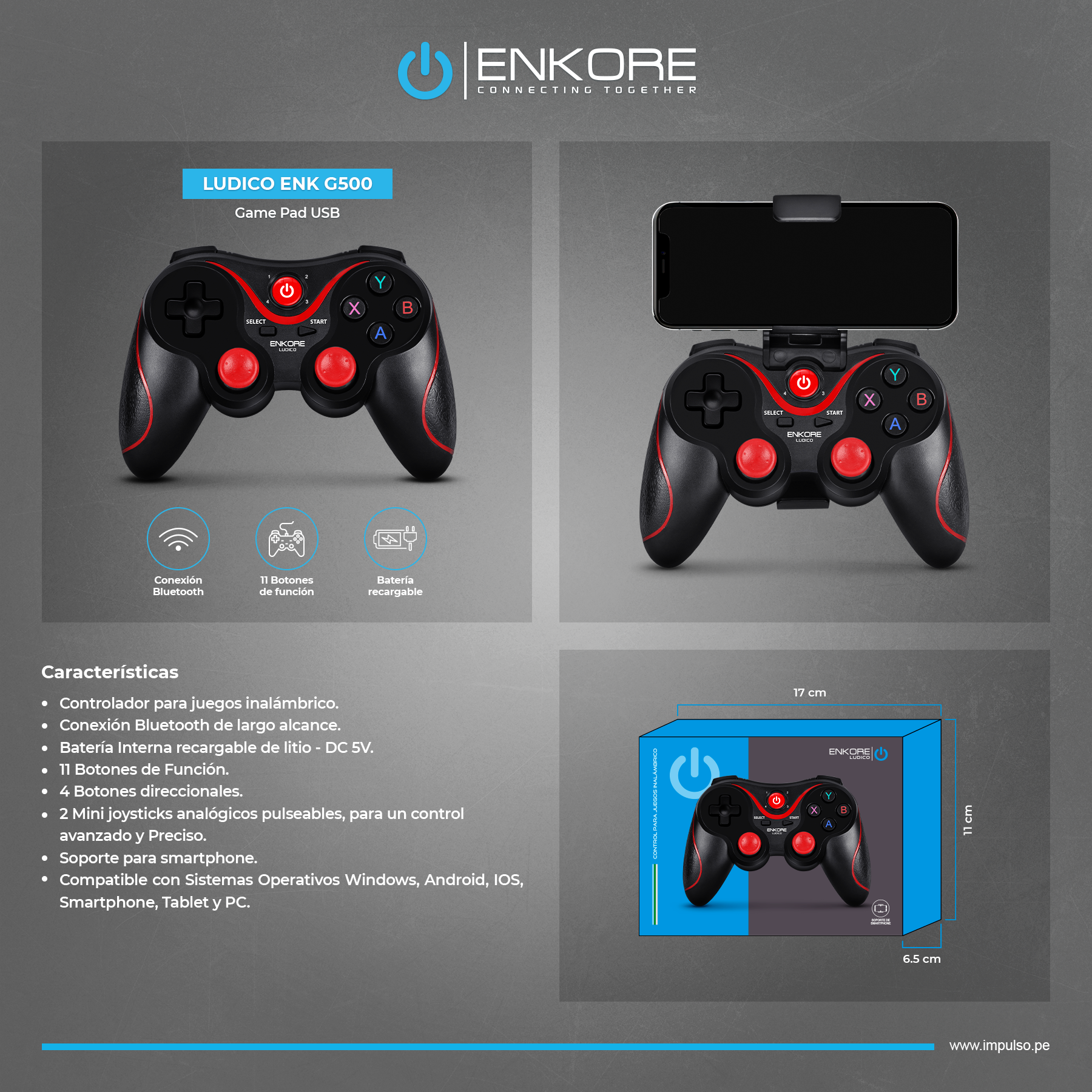 Marca: Enkore Enkore / Gamepad / Gamepad Inalámbrico BT