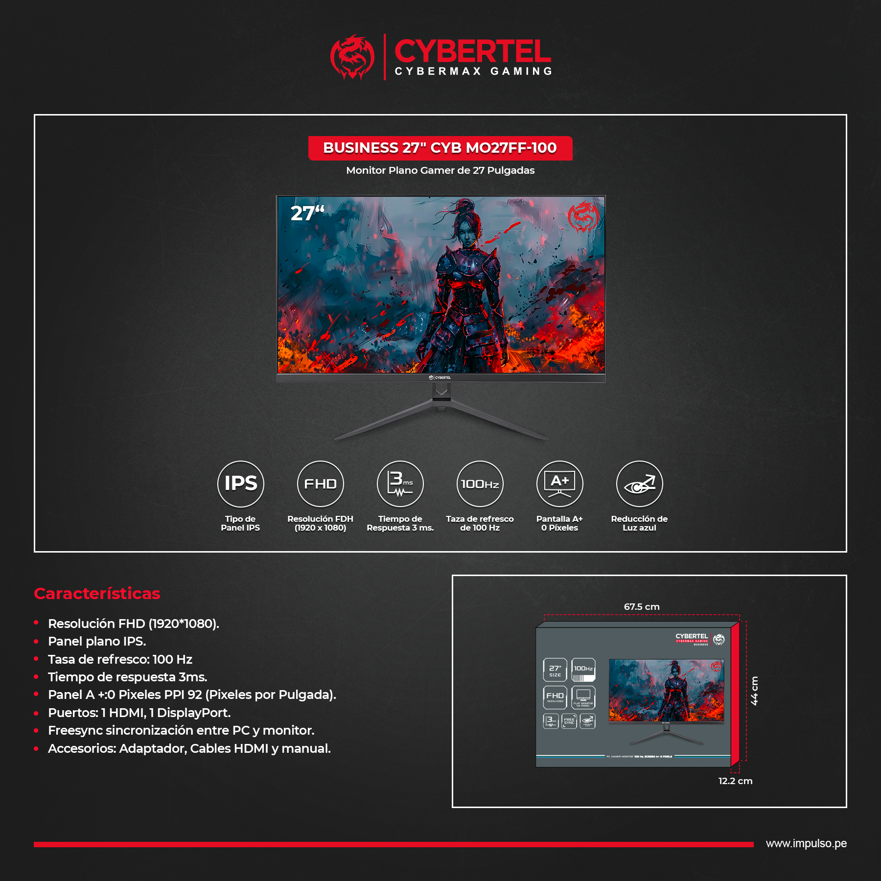 Accesorios: Adaptador, Cables HDMI y Manual.