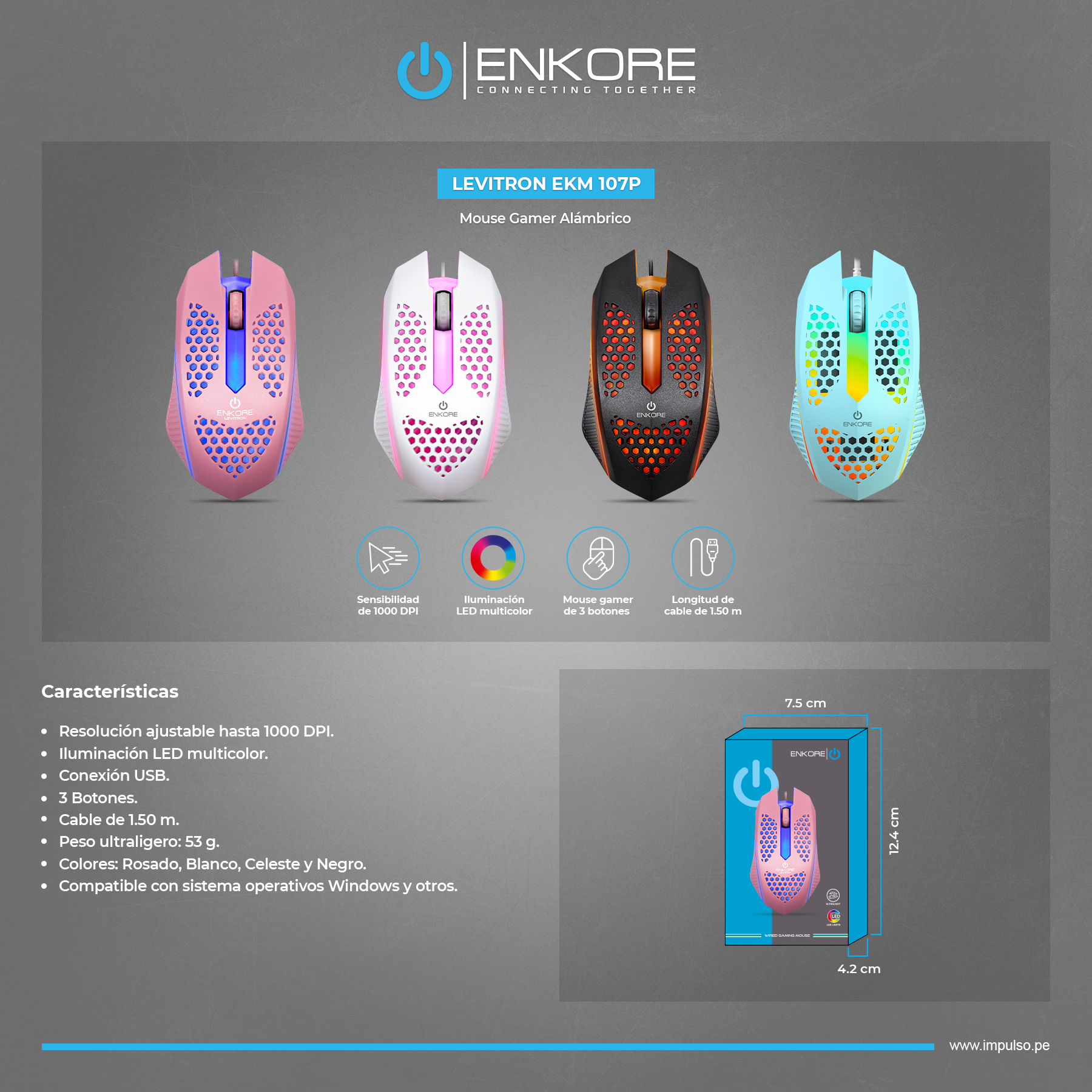 Colores: Rosado, Blanco, Celeste y Negro. |