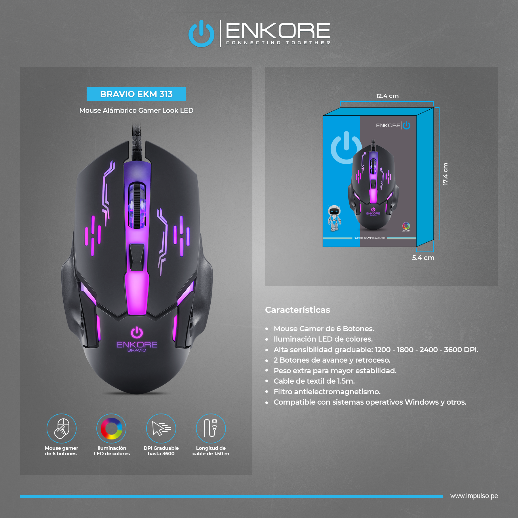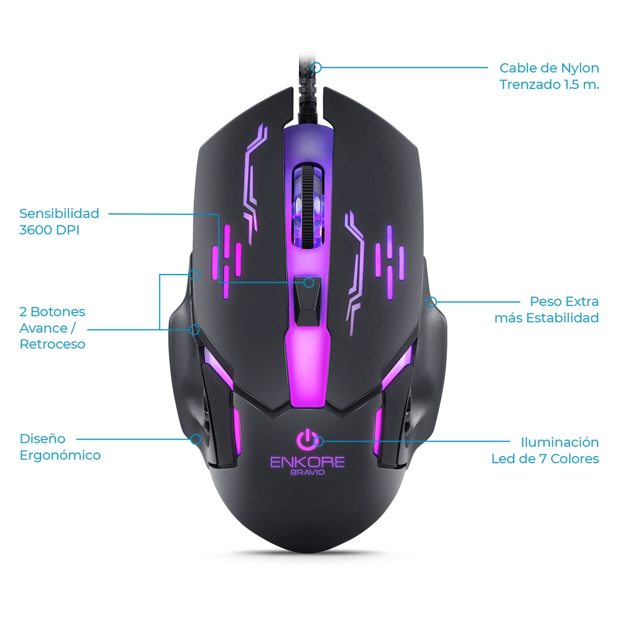 Alta Sensibilidad Graduable: 1200 - 1800 - 2400 - 3600 DPI.