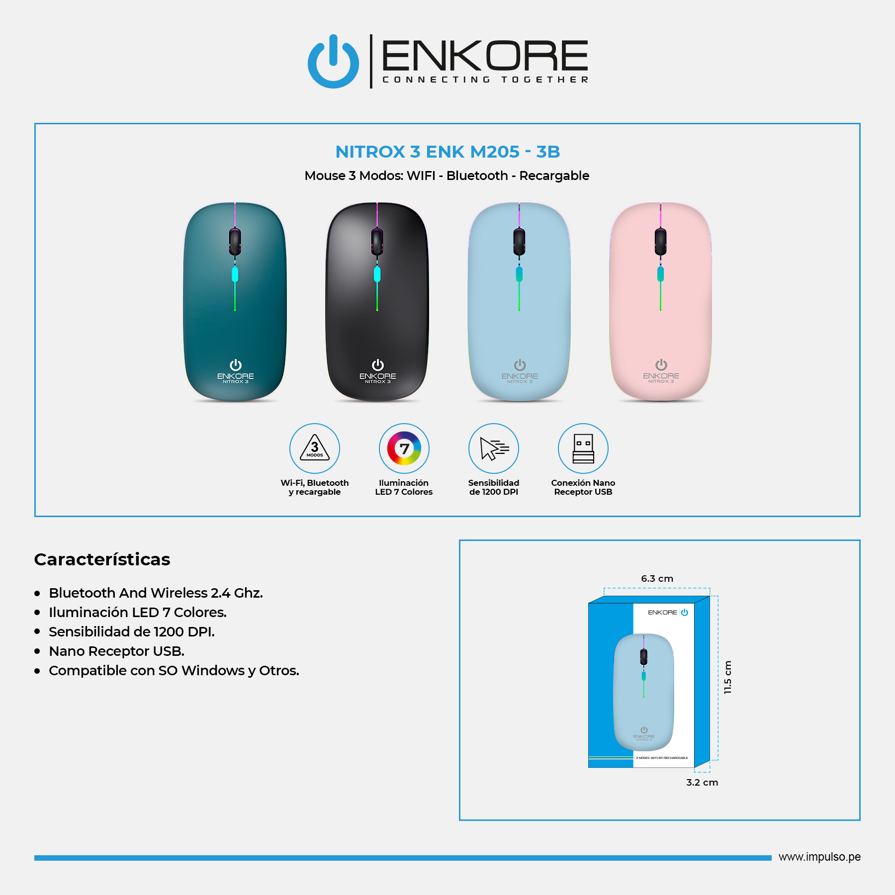 3 Modos: WIFI / Bluetooth / Recargable