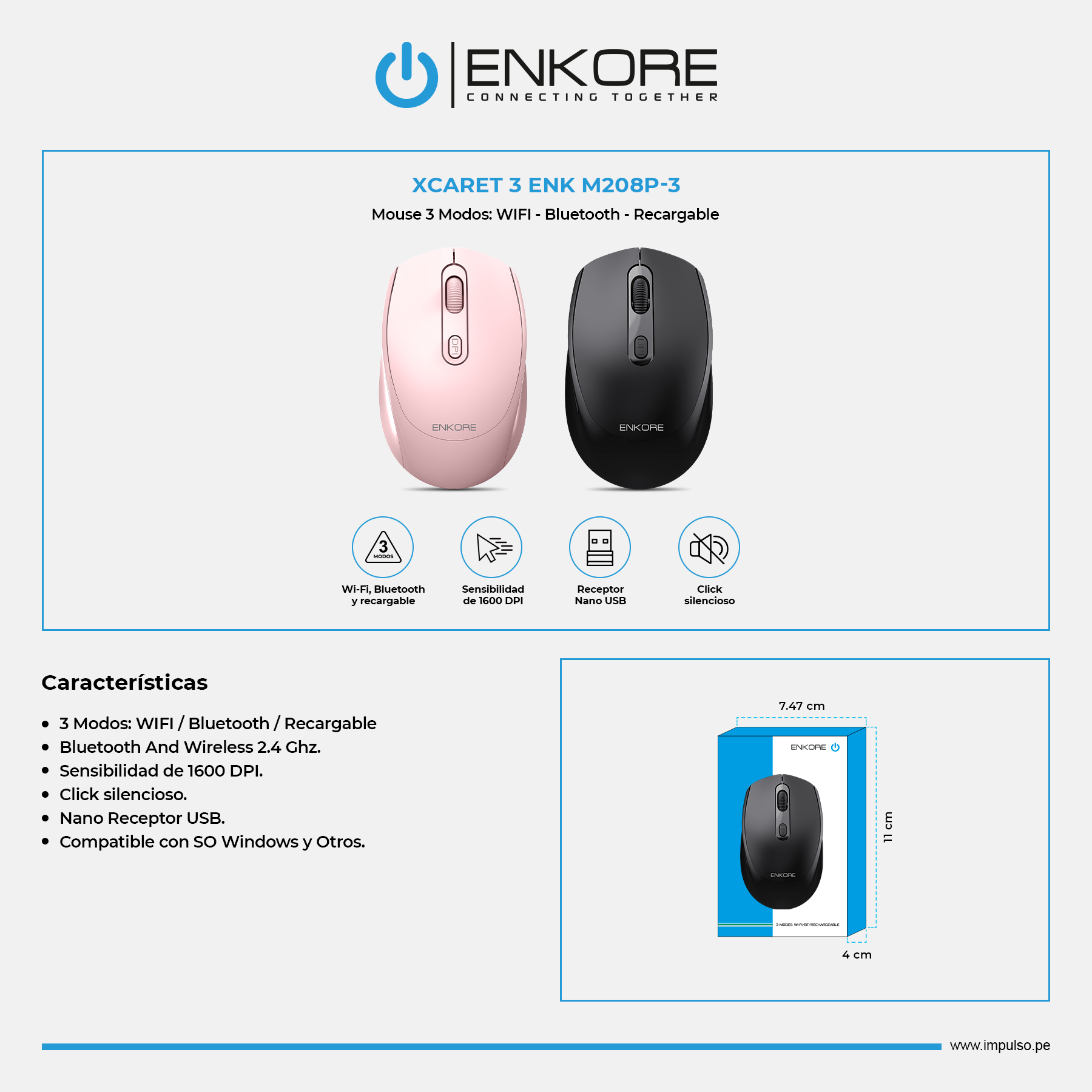 Marca: Enkore Enkore / Mouse / ENK - Office 3 Modos: Bluetooth / Wireless / Recargable