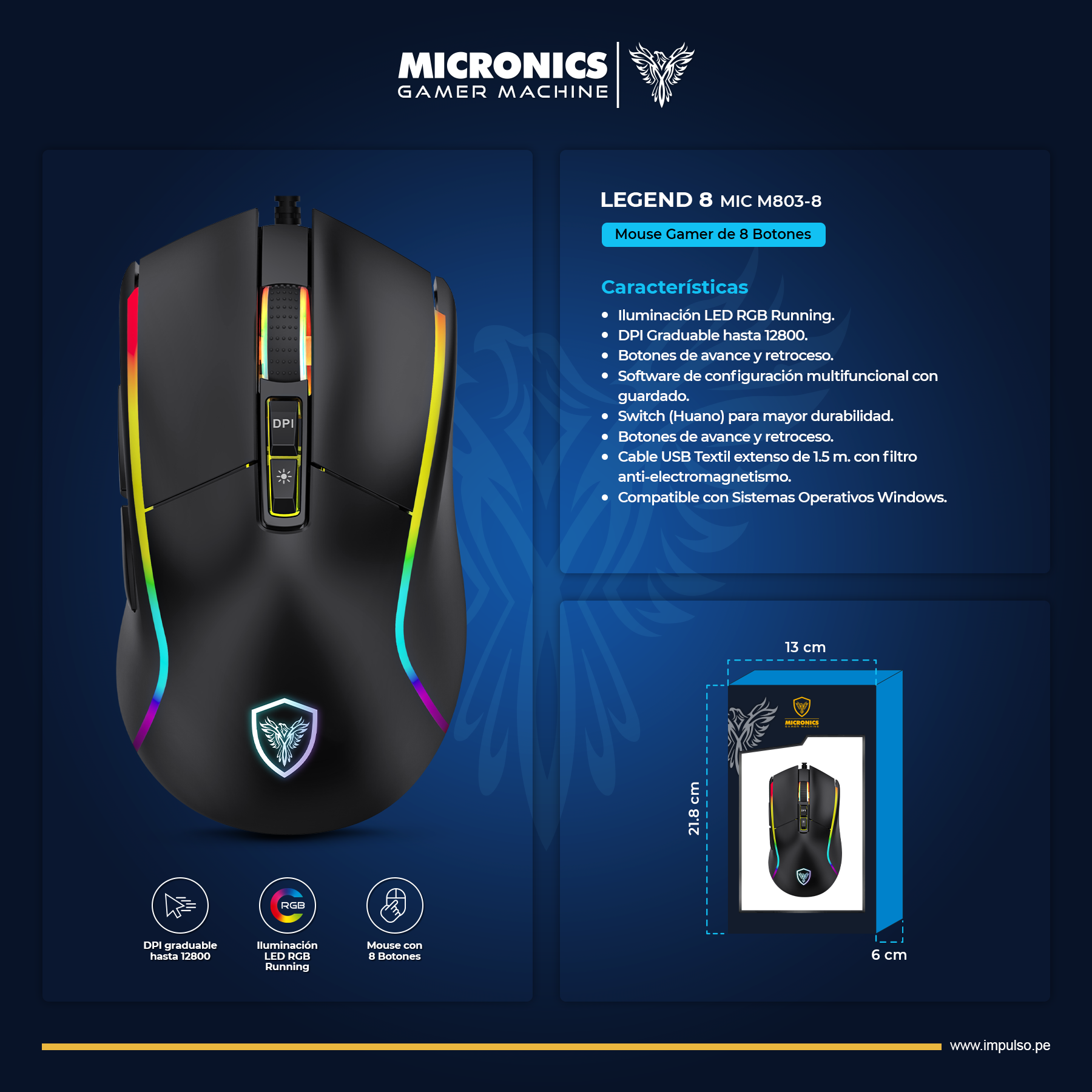 Mouse Gamer RGB de 8 Botones.