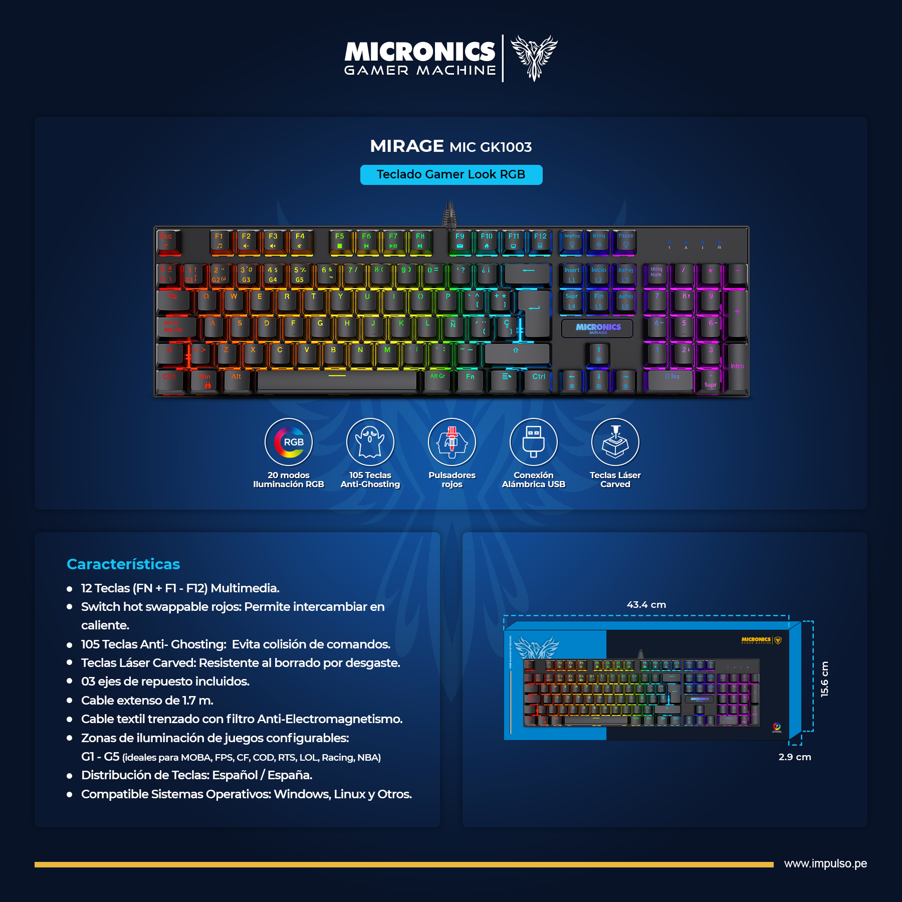 105 Teclas Anti- Ghosting: Evita Colisión de Comandos.