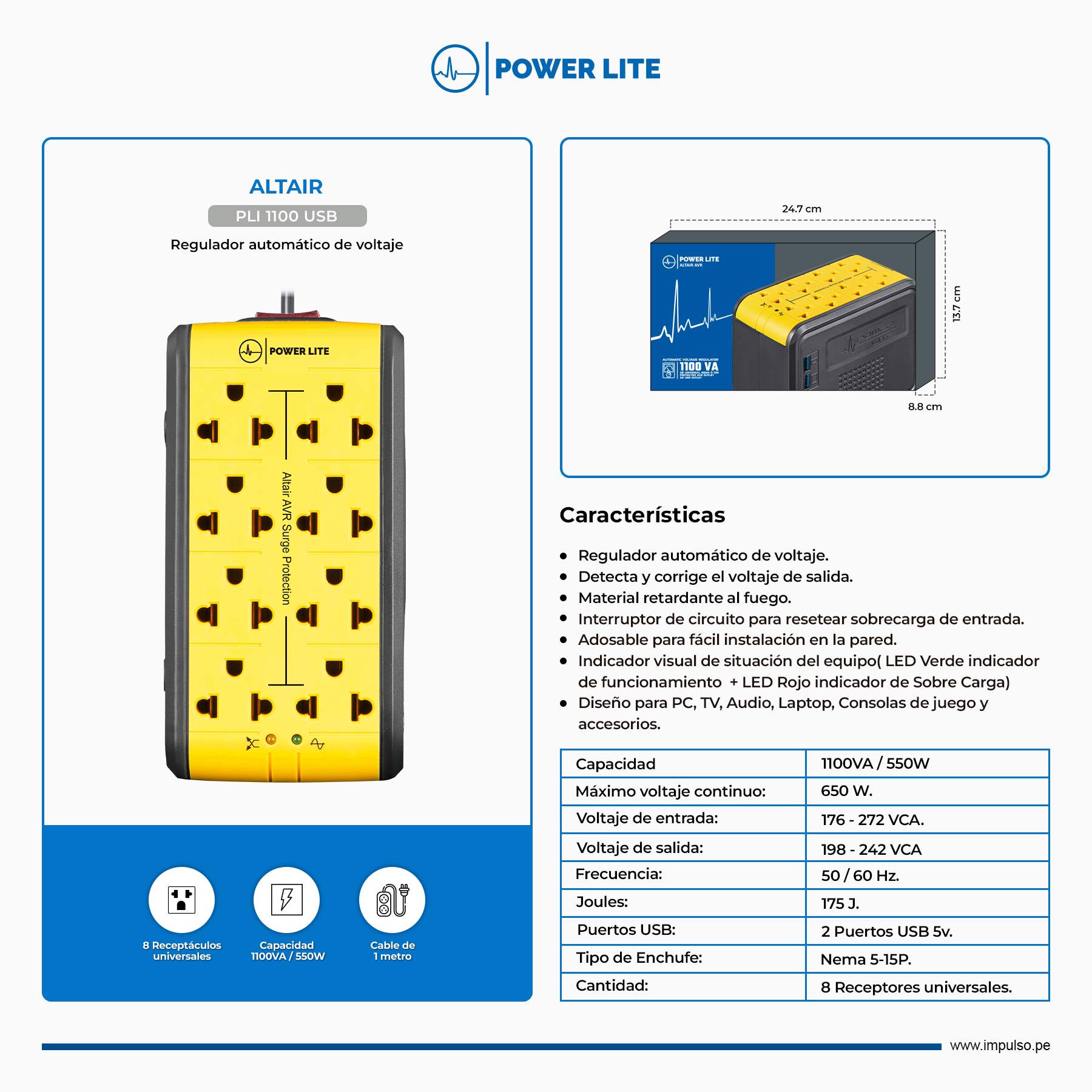 Capacidad: 1100VA/550W