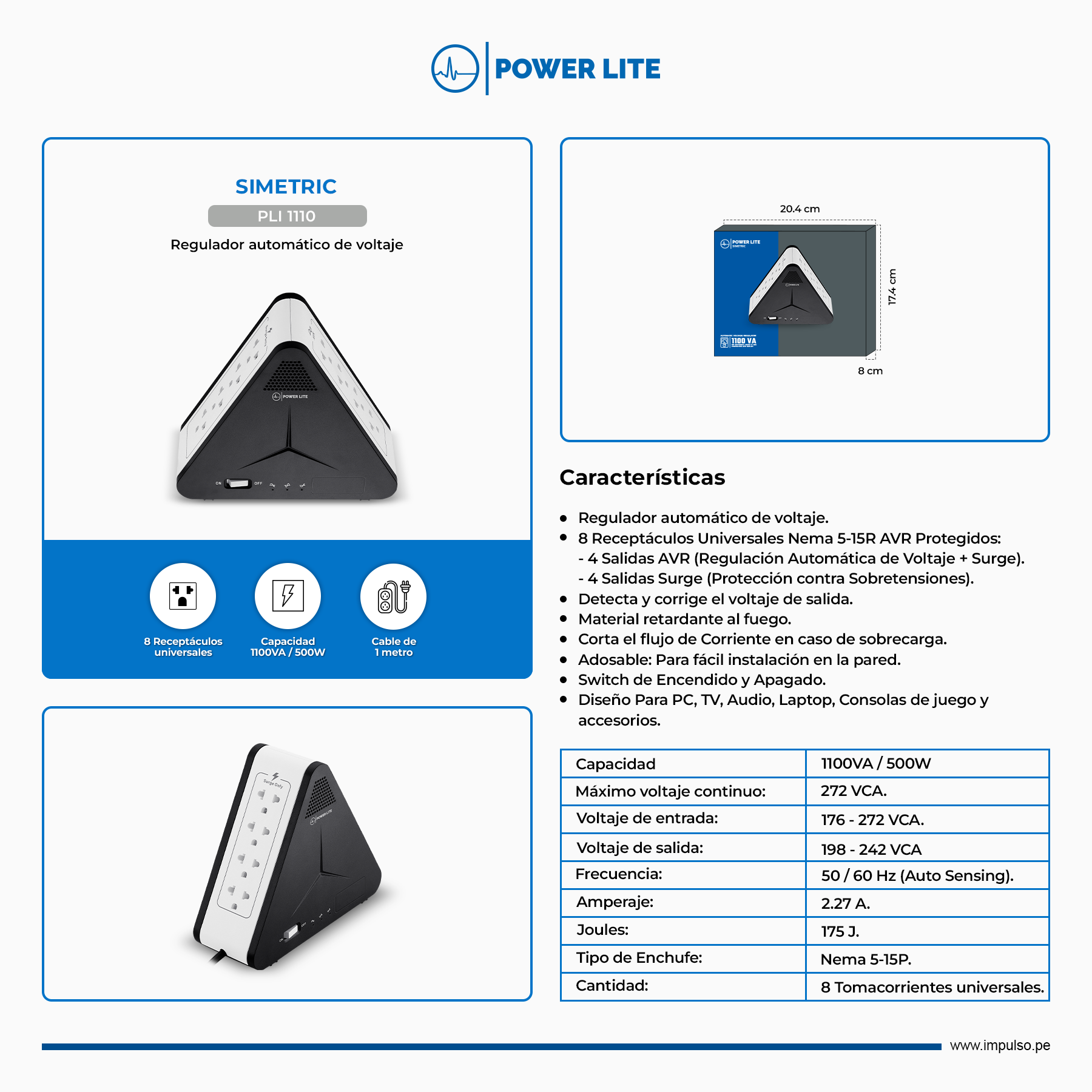 Capacidad: 1100VA/500W