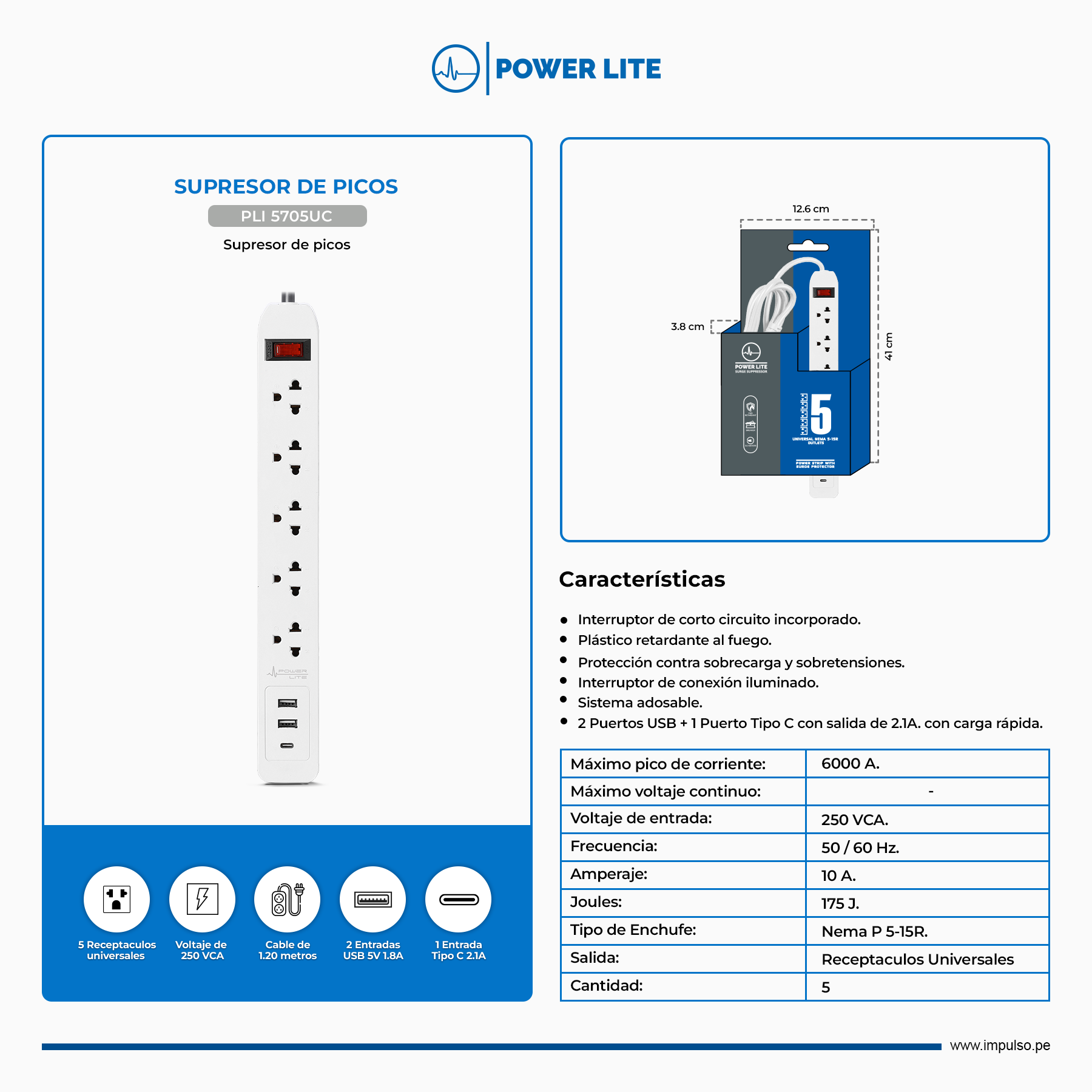 Tipo de enchufe: Nema P 5-15R
